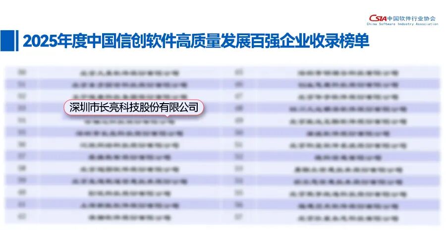 近日,在中國軟件行業協會、華東師范大學聯合主辦的2025中國軟件高質量發展大會上,長亮科技憑借突出的技術創新與行業貢獻,一舉斬獲“中國軟件誠信示范單位(2025-2028年)”、“2025年度中國軟件高質量發展前百家企業”兩項重磅榮譽。此外,公司亦入選中國軟件行業協會發布的“2025年度中國信創軟件高質量發展百強企業收錄榜單”,充分彰顯了其在金融科技領域的強大實力與標桿姿態。
